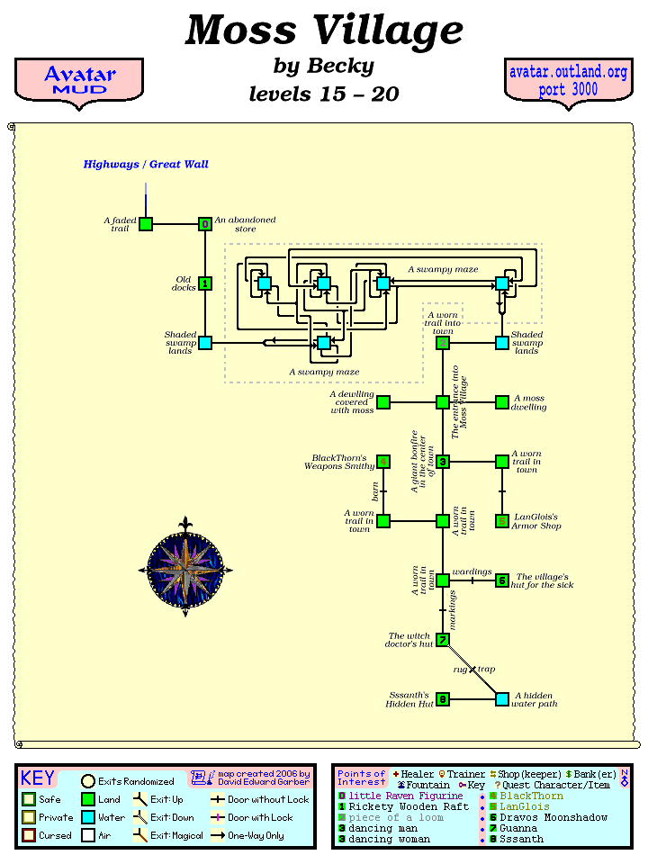 Moss Village map. Please contact Dave Garber, its maker, to provide corrections or suggestions.